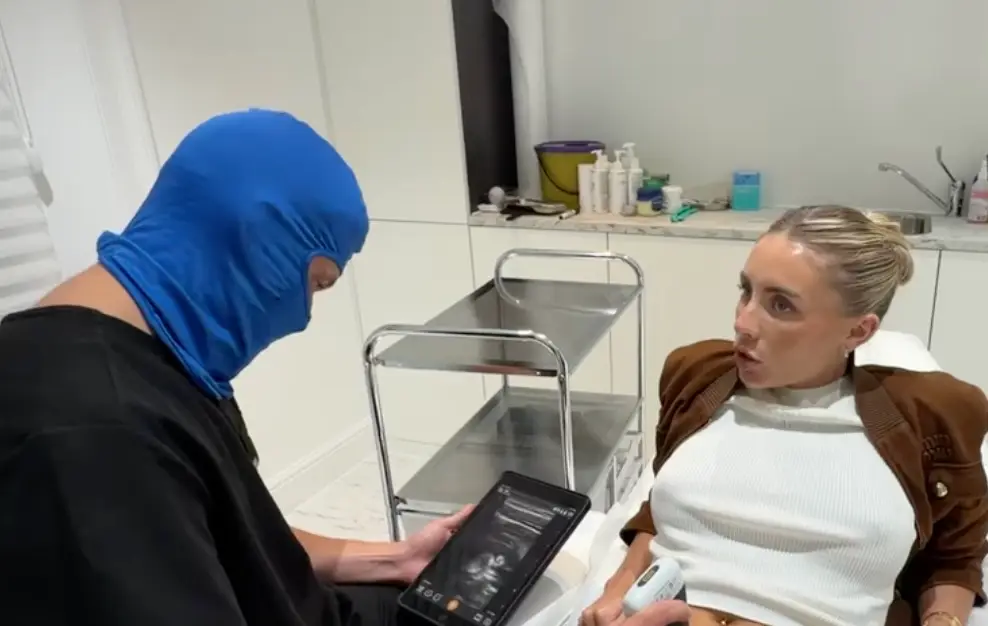 What follows is a visit to what she calls a “private scan,” where a man identified as her doctor — notably wearing a blue ski face mask — appears to confirm the pregnancy via ultrasound. The ‘doctor’ tells Blue the conception likely occurred 11 to 13 days prior, aligning it directly with her Tenerife event.