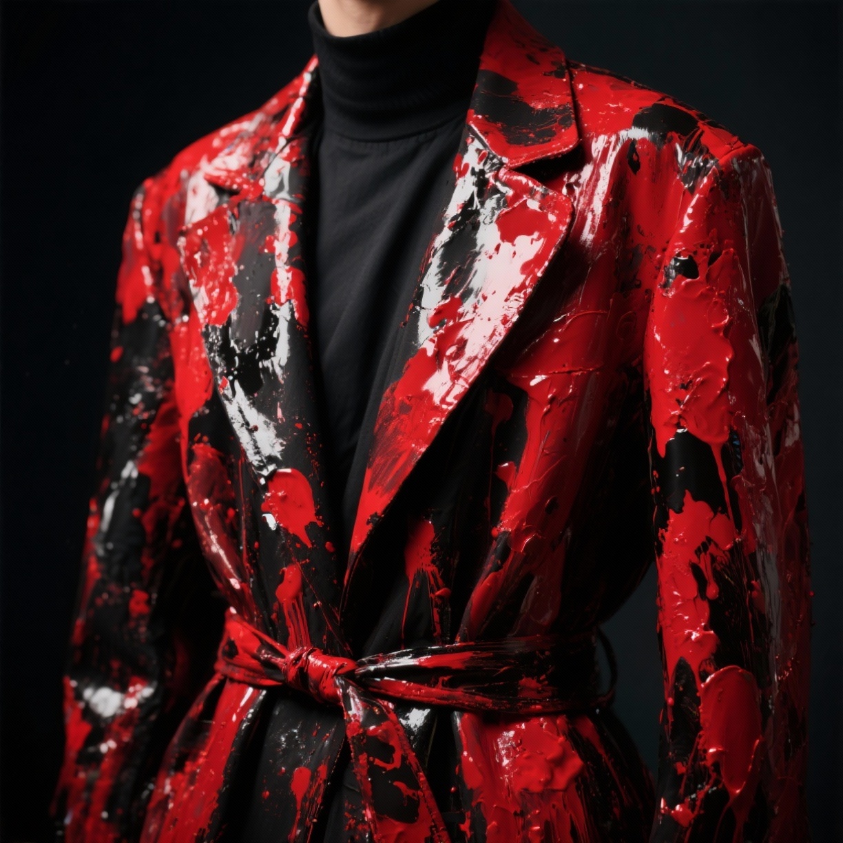 Bright red paint. Splattered across the back of my coat.