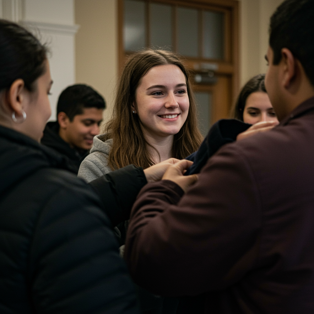 By the third week, something changed. When I stopped by to drop off donations, I saw her quietly sorting through donated coats. She looked up, startled, then looked away, embarrassed.