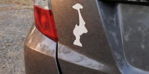 You’re in a grocery store parking lot somewhere in America. The car next to you is plastered with adventure decals — mountain peaks, national park badges, a Hydro Flask logo. And there, among them all, is the outline of Washington state. Flipped completely upside down.